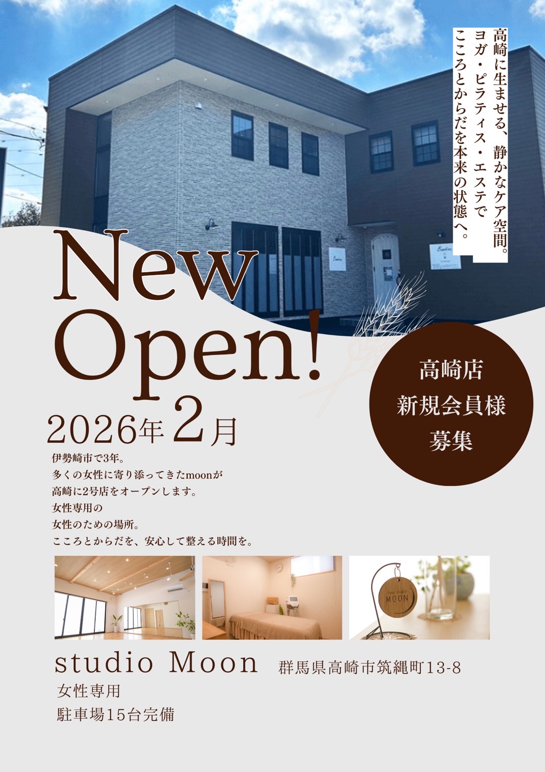 08Jan2026 高崎2号店オープン Tweet Pin it ヨガ・ピラティススリムキャンペーン 新春 ヨガ・ピラティスキャンペーン 最近のお知らせ一覧お知らせ一覧 新春 ヨガ・ピラティスキャンペーン 2026.01.14 ヨガ・ピラティススリムキャンペーン 2024.06.26 4/19(金)から朝ヨガクラス増えます 2024.03.23 春ビューティーキャンペーン 2024.03.04 ピアノとヨガ 2024.02.19